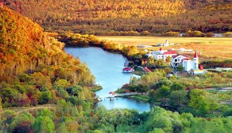 镜泊湖:位于黑龙江省牡丹江市,是中国最大的火山湖,湖水清澈见底,湖岸风光旖旎,是东北地区著名的避暑胜地。
